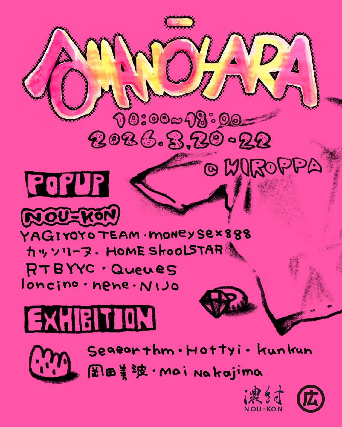 予告HIROPPA[ART,EVENT,HIROPPA,POPUP]AMANŌHARAAMANŌHARA 3/20(Fri)-3/22(Sun) 10:00-18:00 venue:@maruhiro.hiroppa NOU-KONが、長崎と東京のユースを繋ぐポップアップイベントをヒロッパにて、開催。 出 […]日程2026.3.20[金]〜3.22[日]時間10:00~18:00場所HIROPPA